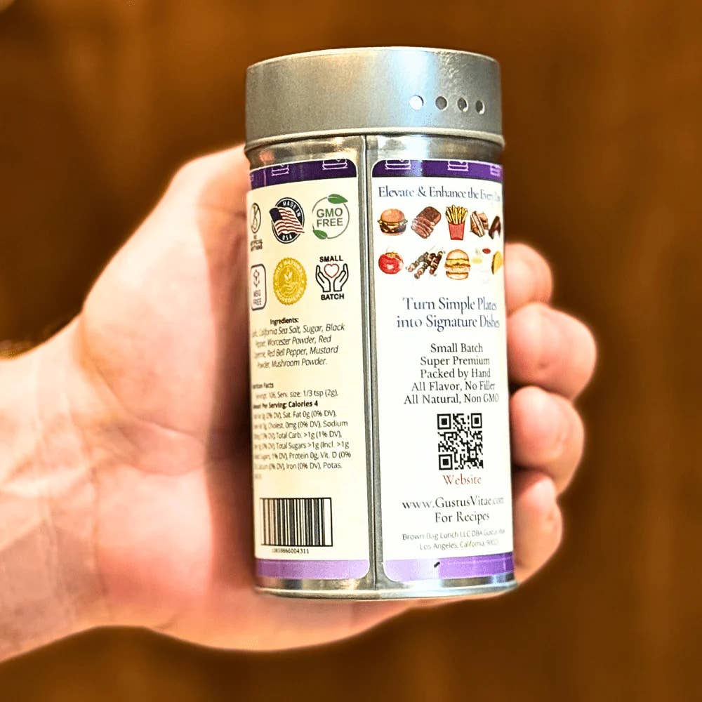 We love burgers, and when we make them, we want them to be delicious and healthy. Enter our Everything But the Burger Seasoning, an all-natural, non-GMO alternative. We've traded MSG for carefully dried savory ingredients like Worcester sauce, corn syrup for sugar, and fillers for flavor. Crafted in small batches using only the very best sustainably sourced ingredients, our Everything But The Burger Seasoning is built for burgers, but we love it just as much as a marinade for shellfish and seafood, as the secret ingredient in our Bloody Mary mix, and when tossed with rough chopped veggies and a bit of olive oil before roasting in the oven or searing on the BBQ.