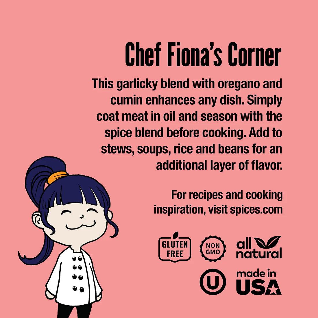 Made in our SQF-certified facility in the USA, this adobo blend is all-natural, non-GMO, kosher and gluten-free.